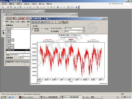 對所有的事件提供擾動類型識別,給出表格顯示及圖形分析。對于選定的某個事件,可以顯示其RMS曲線圖和波形圖.